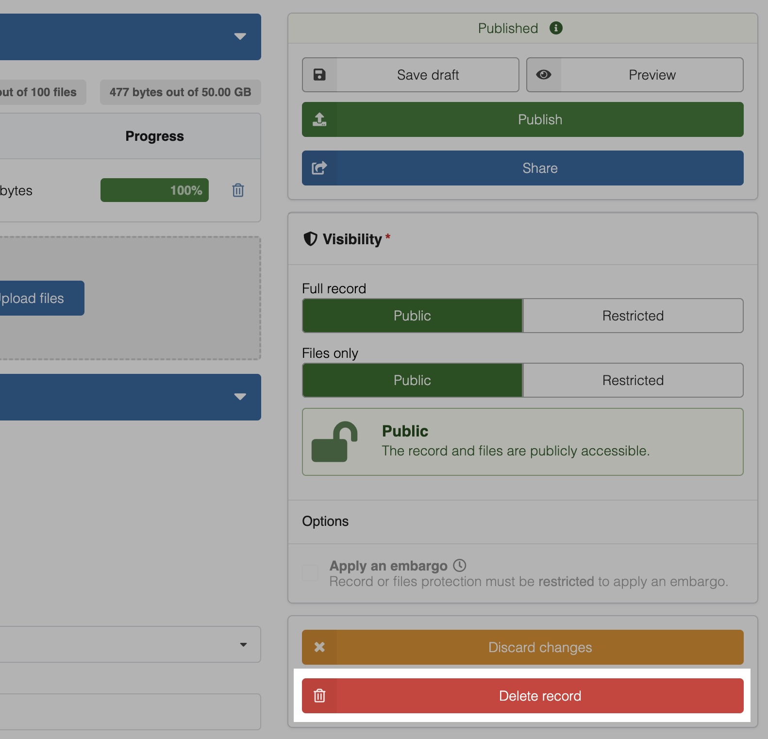 From My Uploads tab you are able to see all your published as well as unpublished records (drafts).